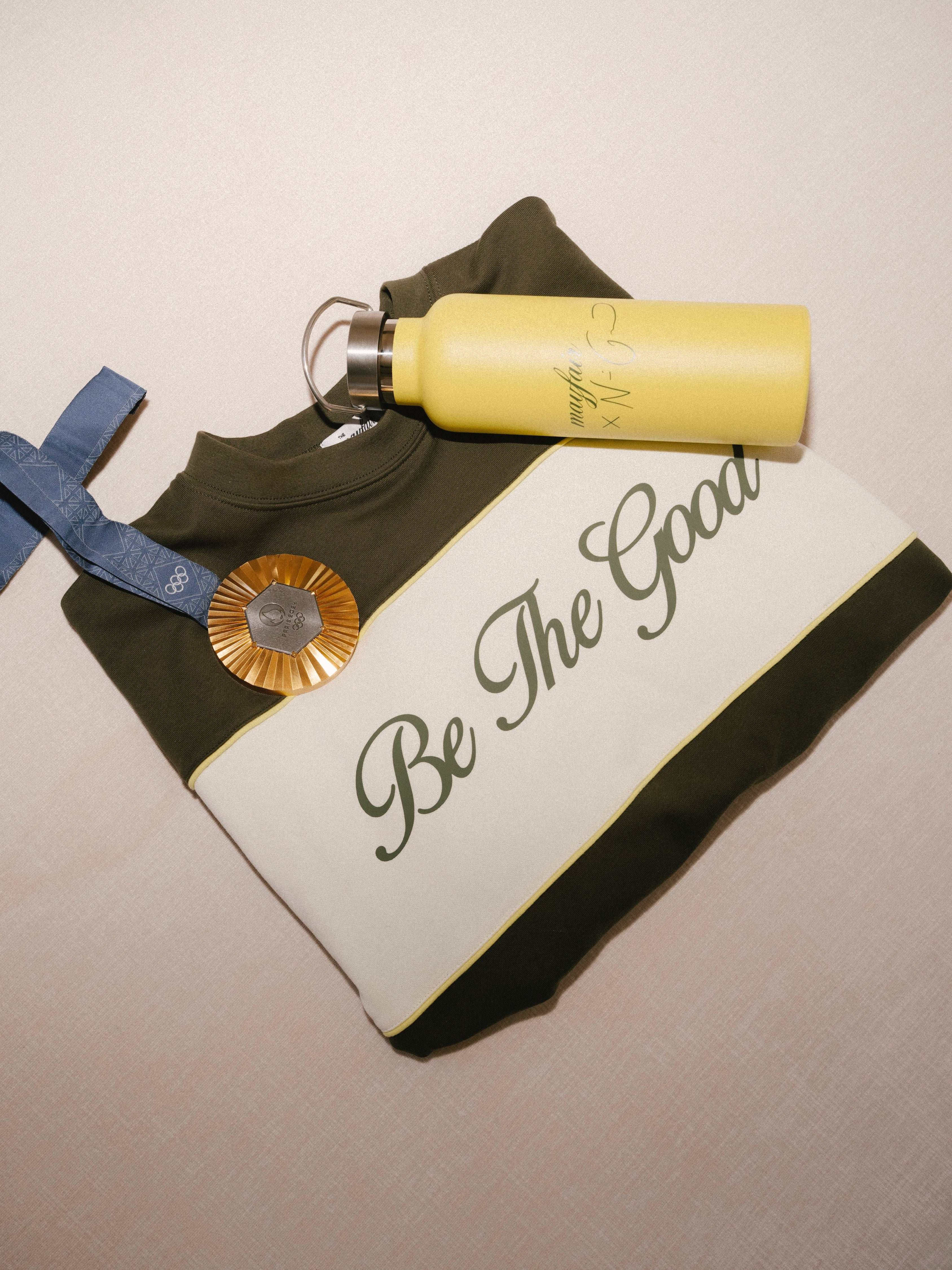 Limited-edition yellow water bottle from the Mayfair x Naomi Girma collection is here to brighten your everyday. Whether you’re on-the-go or just need a reminder to “Be The Good,” this is your new favorite carry-all hydration essential.